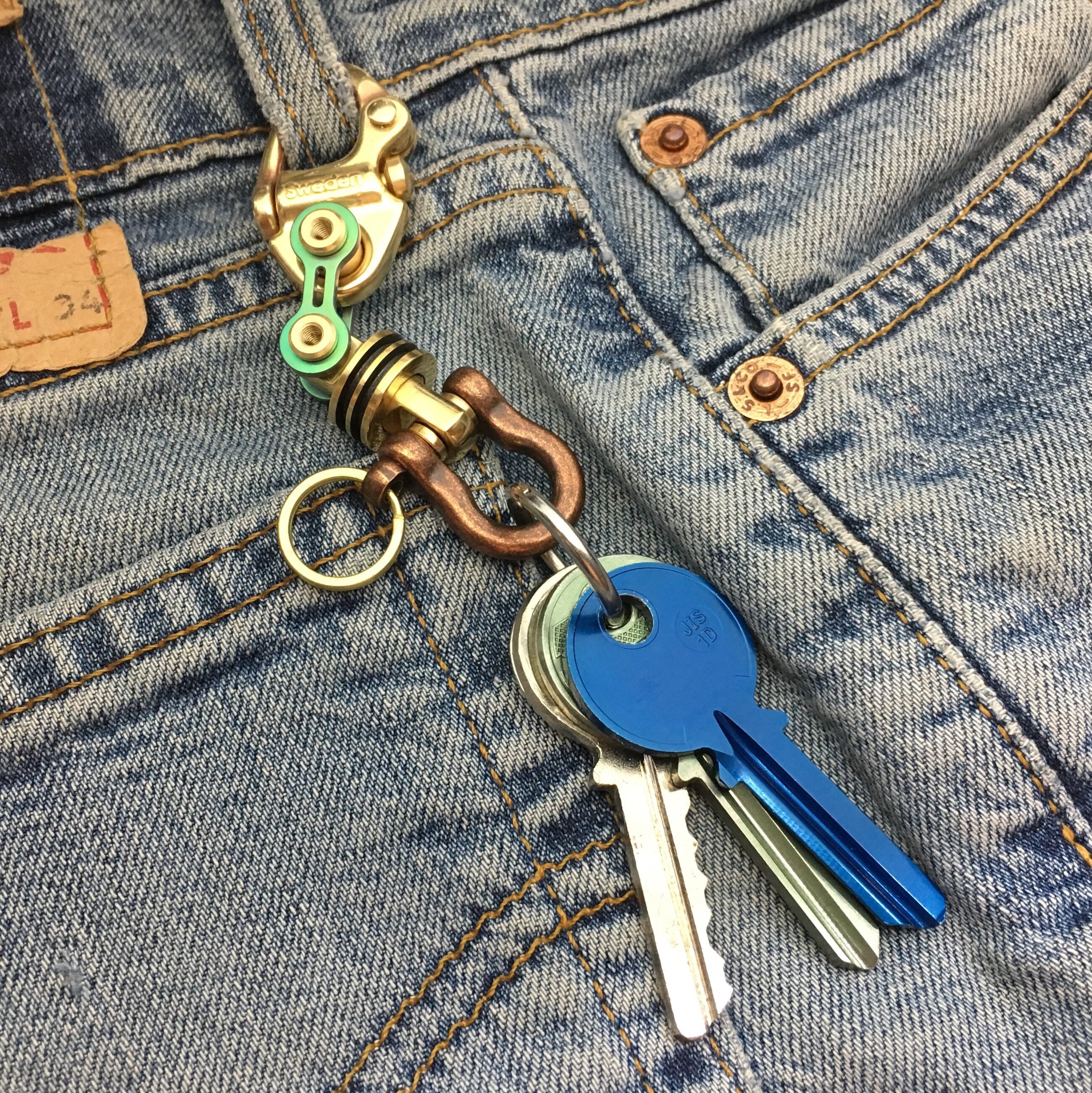 Sweden Brass Sailor Key Chain + Bike-Link + Swivel + Omega Shackle