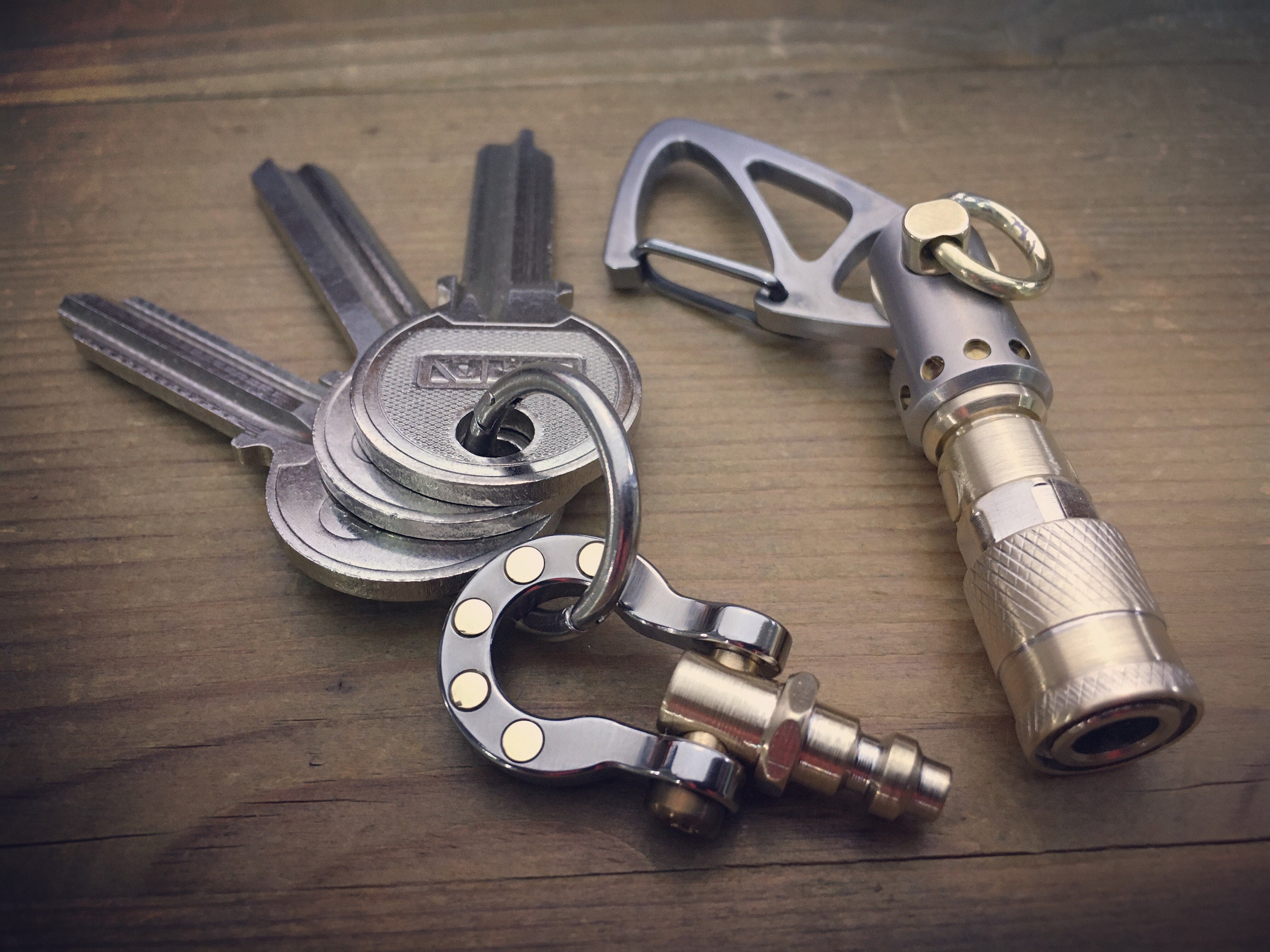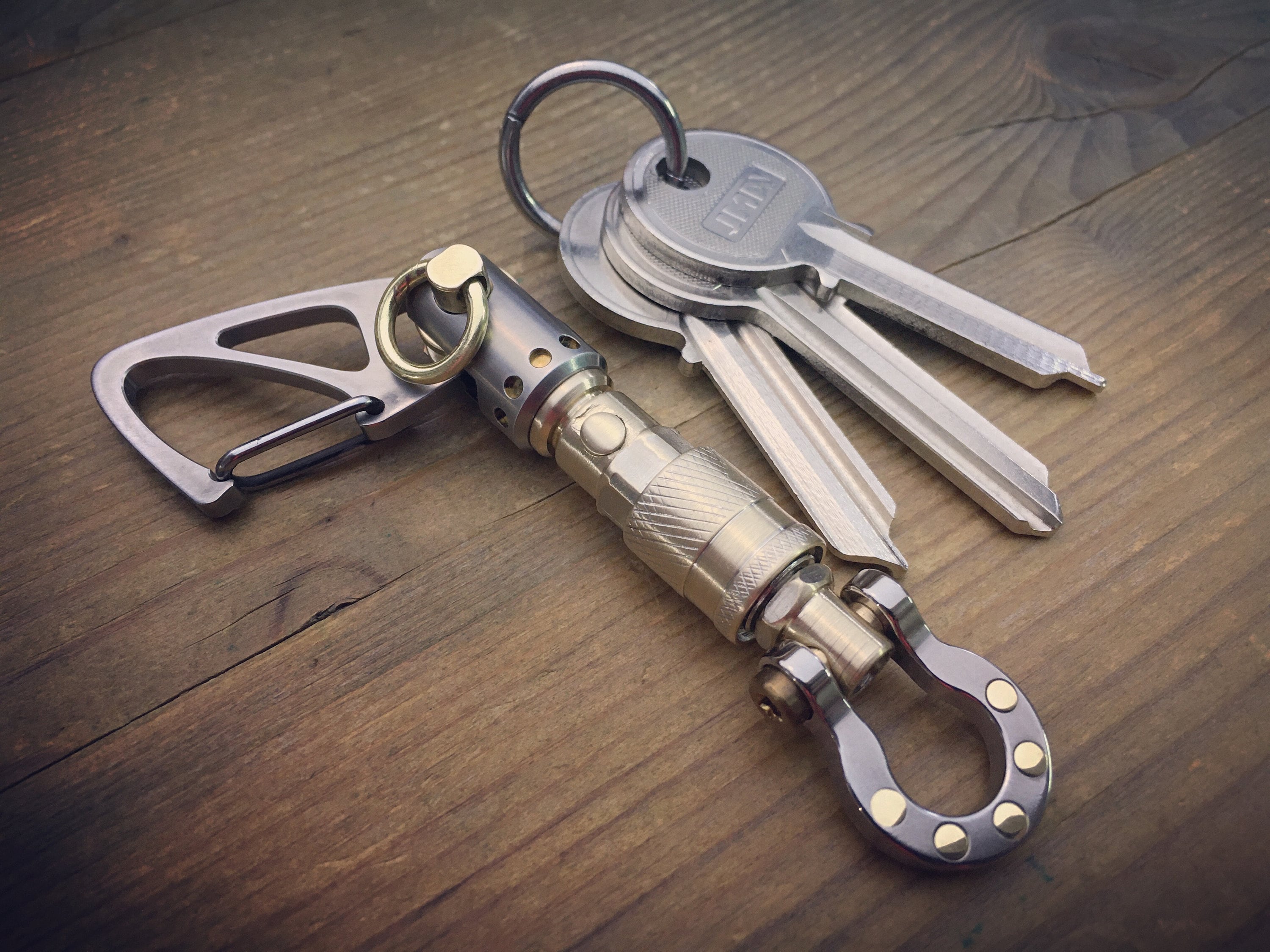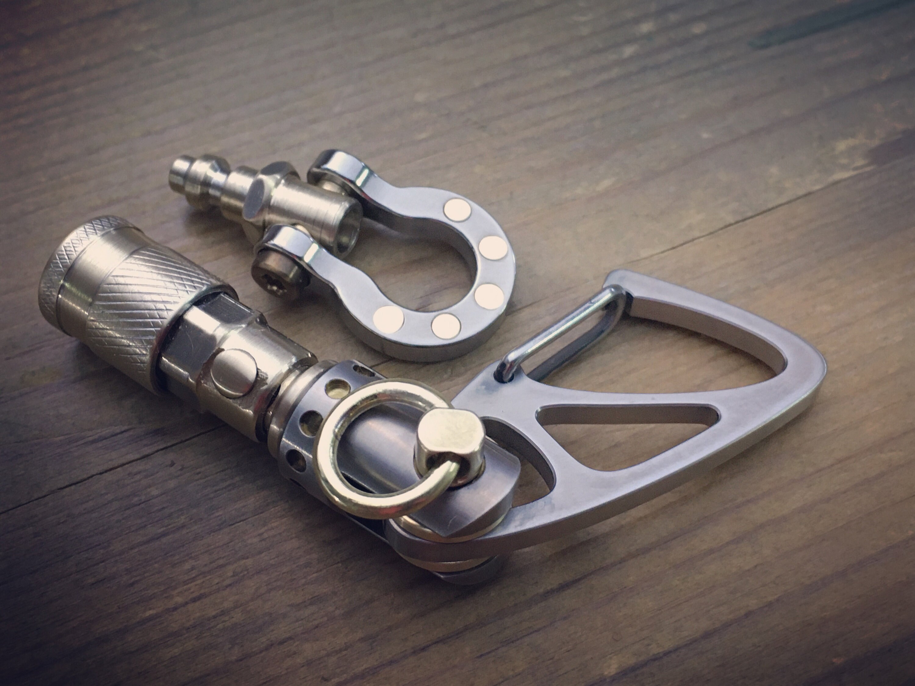 Recycled Quick release connector EDC-Keychain / Titanium-Brass / Aged texture
