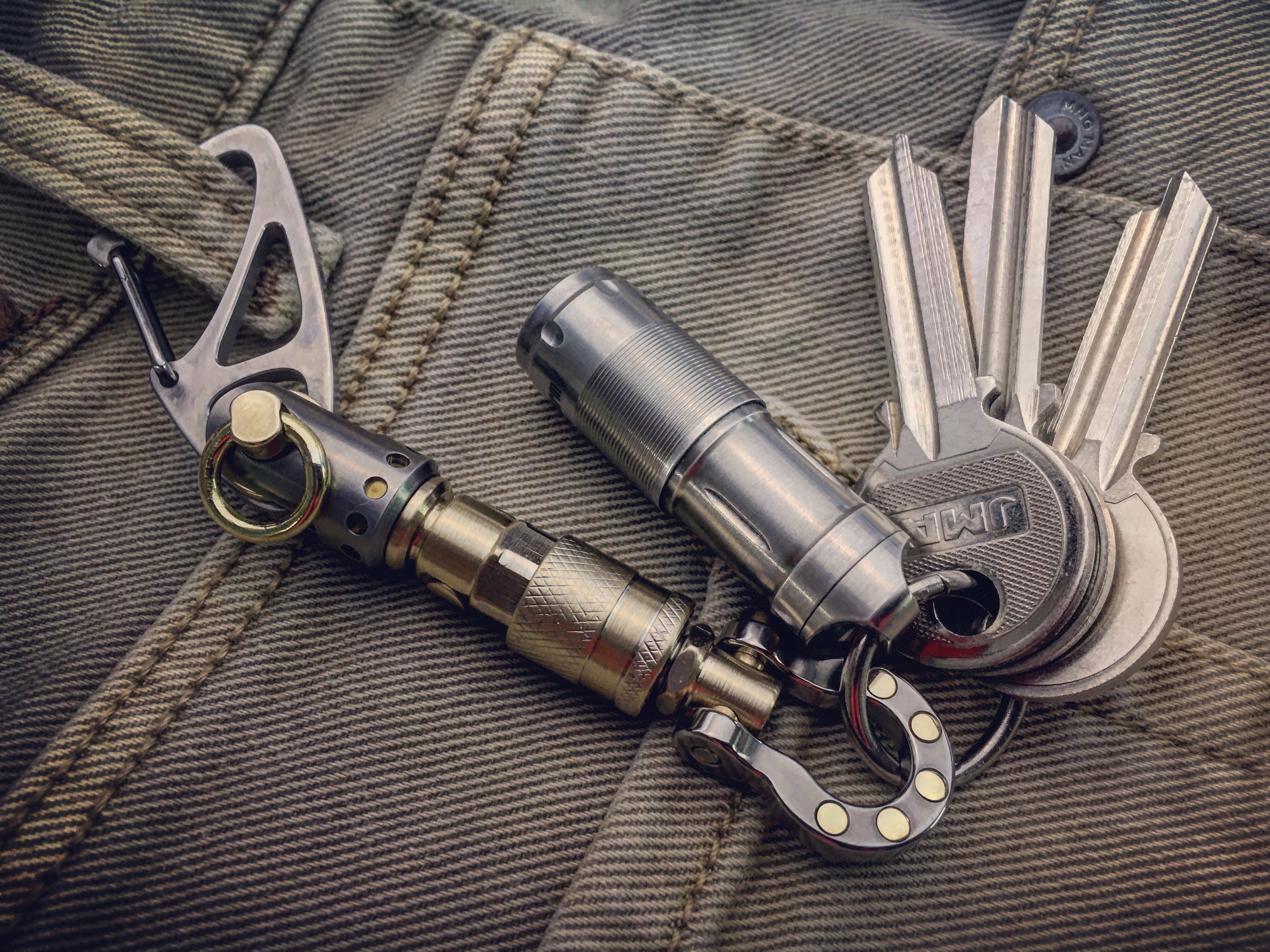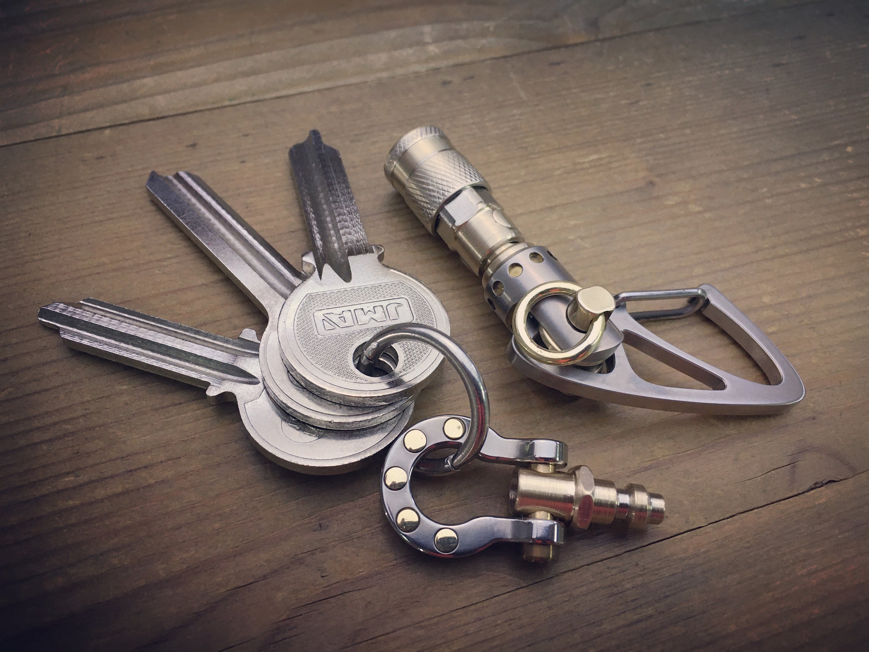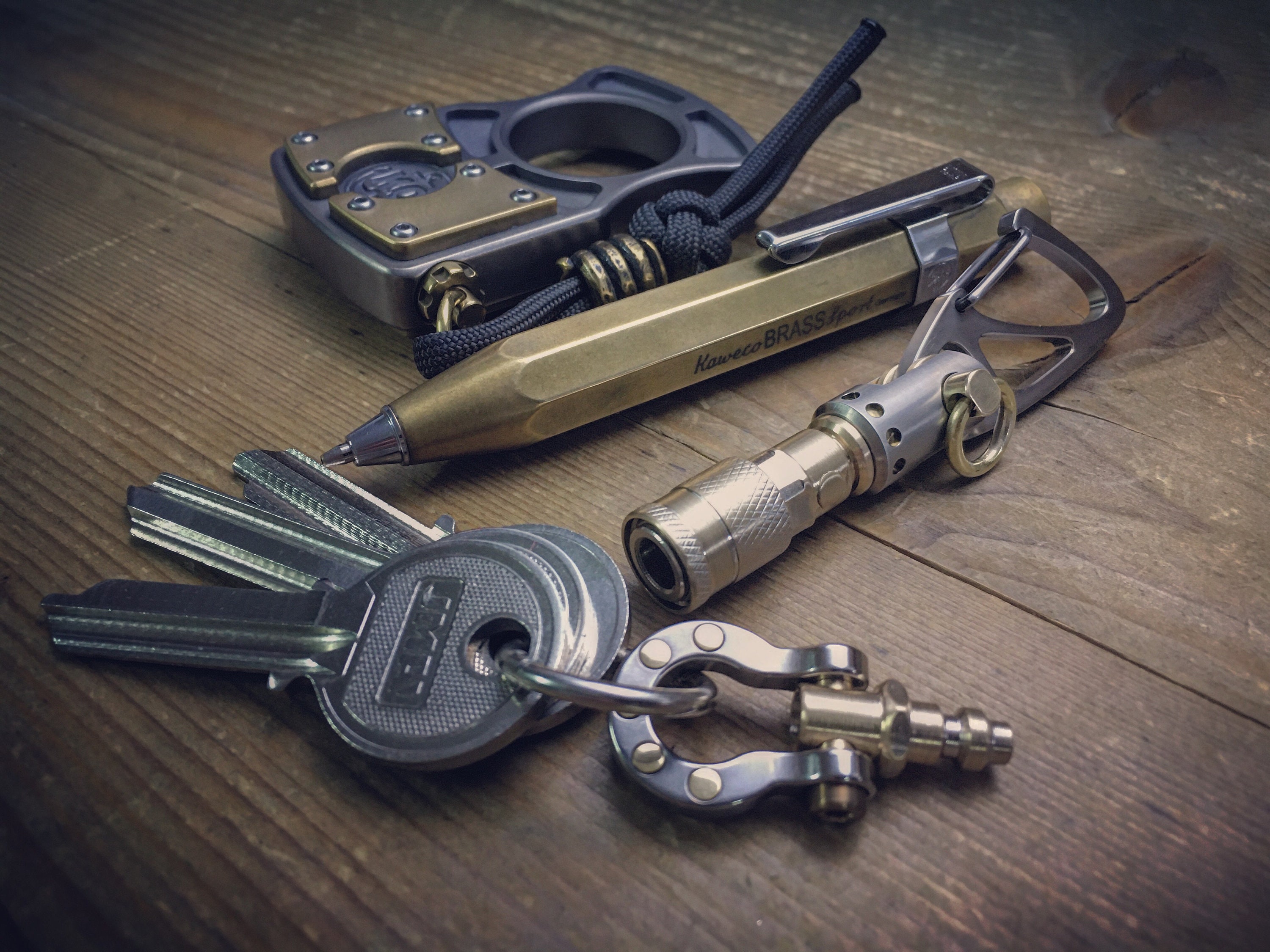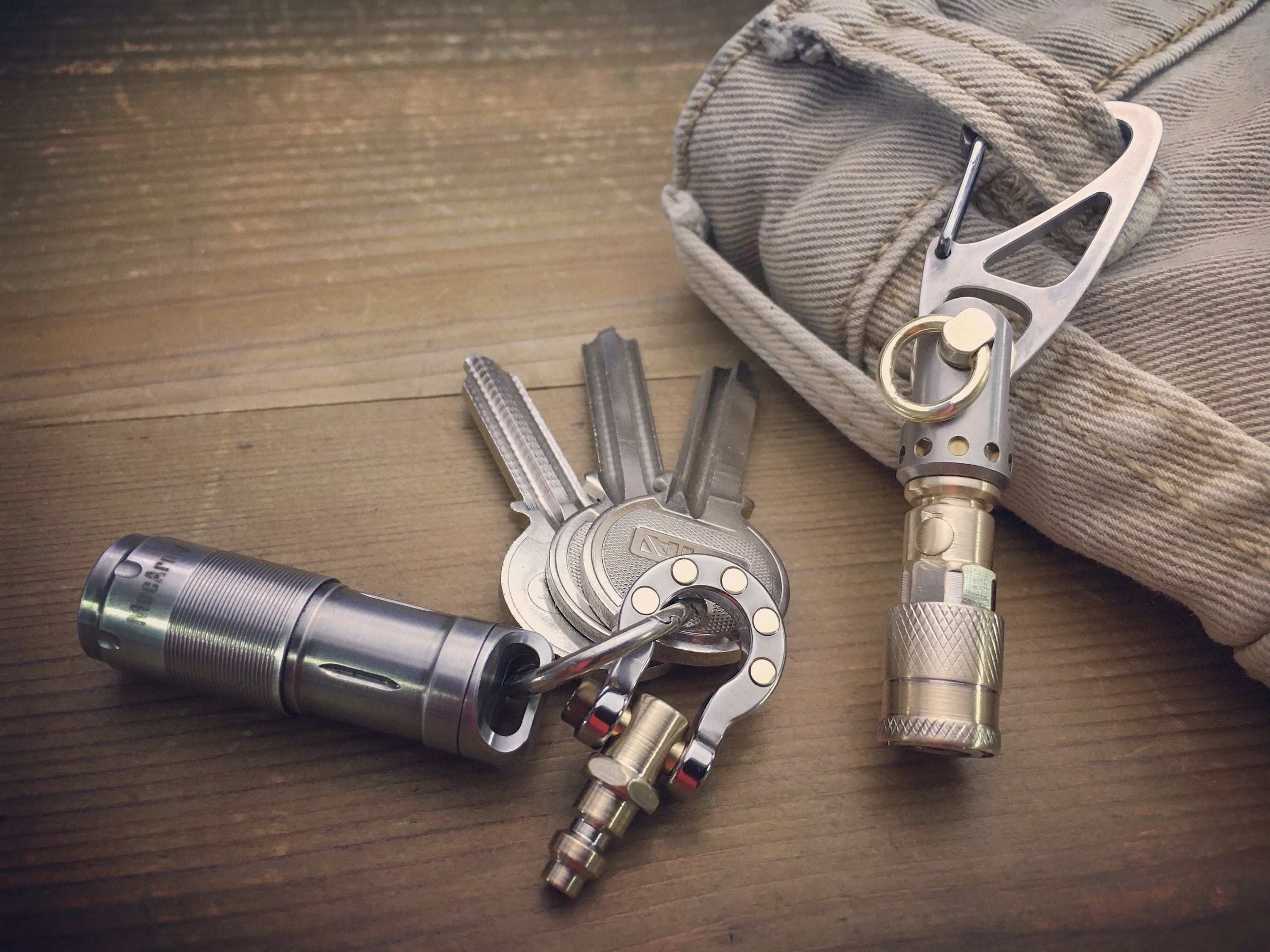 Recycled Quick release connector EDC-Keychain / Titanium-Brass / Aged texture